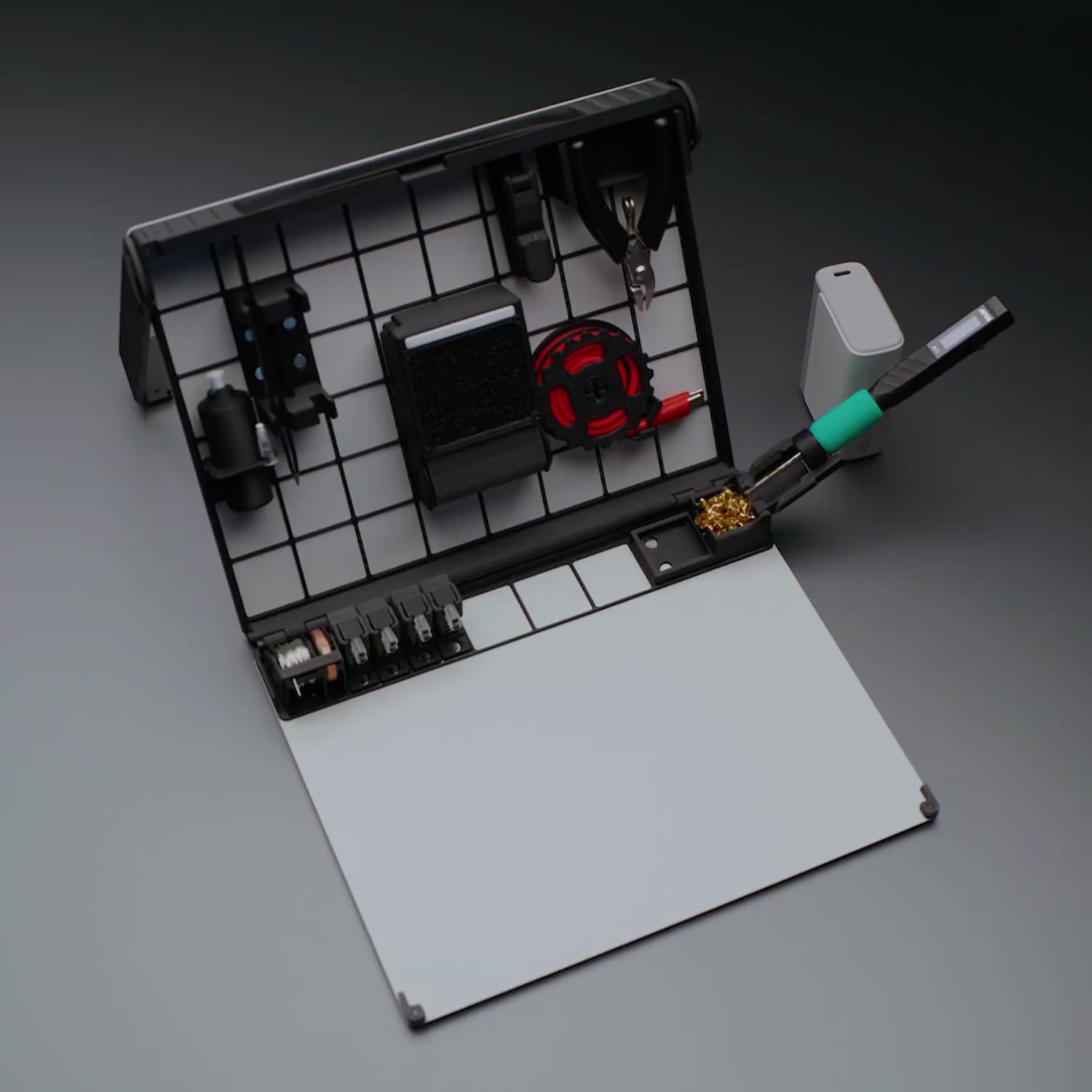 SOLDR features a magnetic modular grid that lets you place each tool exactly where you need it—no fixed layout, no limitations. Every module is easy to move, swap, or upgrade, so your setup can grow and evolve with your needs.